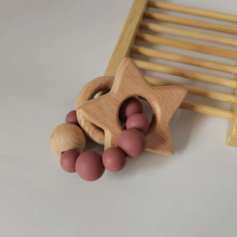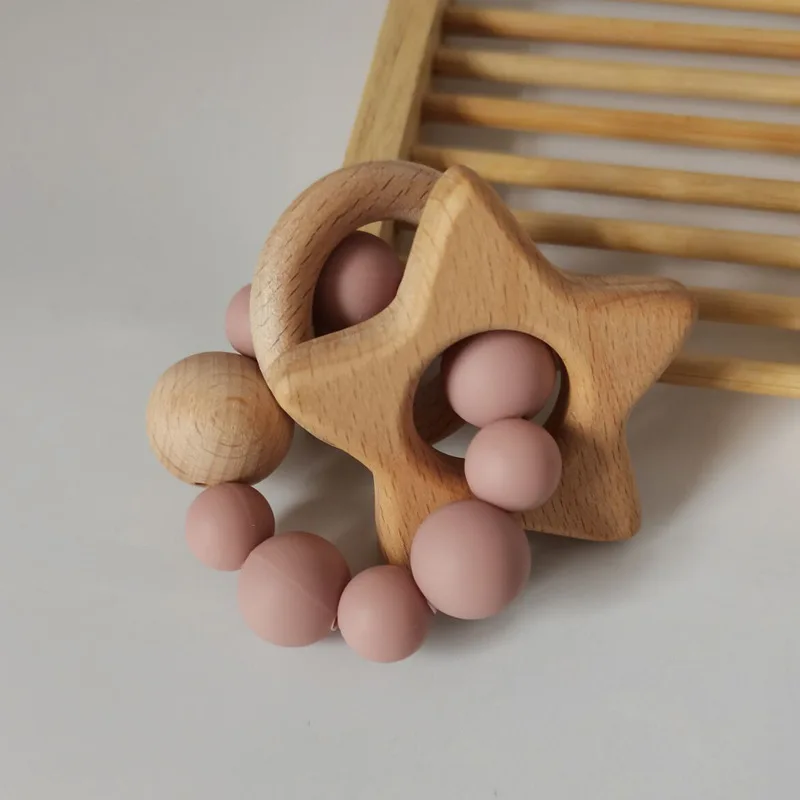 New Baby Products Cartoon Star Beech Wood Gum Creative Baby Silicone Bite Grinding Bracelet Gum Baby Toy Bebes Accesorios